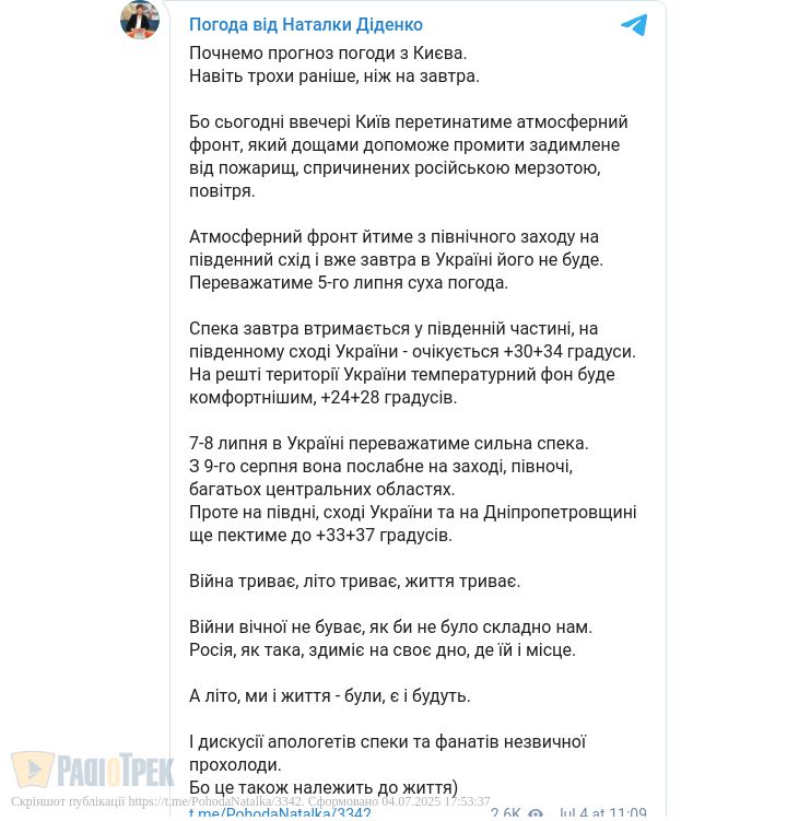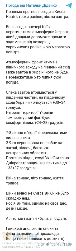 Впродовж 7-8 липня в Україні переважатиме сильна спека. Однaк така погода триватиме не довго.