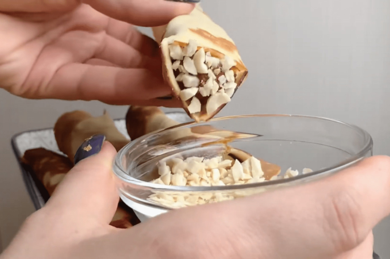 Гарячі вафлі потрібно швидко згорнути в трубочку — після охолодження вони стають твердими і вже не гнуться.
