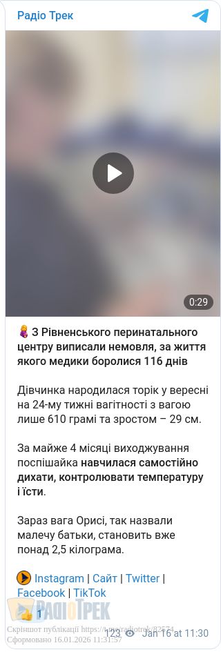 З Рівненського перинатального центру виписали новонароджену, за життя якої медики боролися 116 днів.