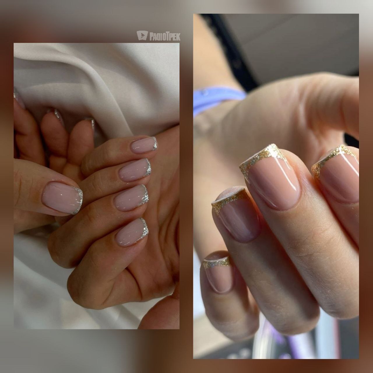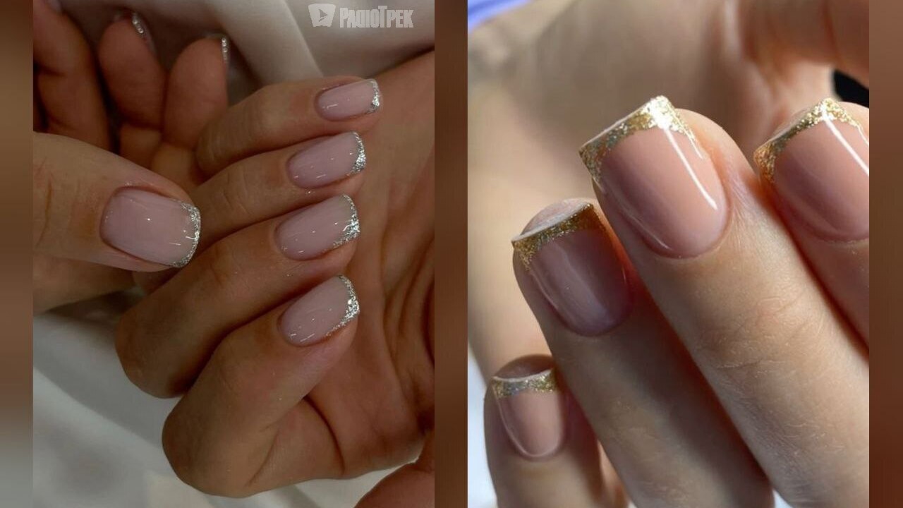 Металевий та блискучий французький манікюр