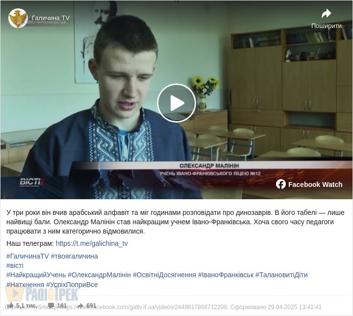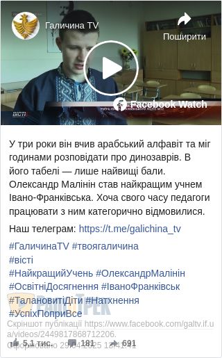 Хлопець дивує своїми знаннями та перемогами на конкурсах, хоча колись вчителі у нього не вірили. Історію унікального школяра розповідає 24 Канал з посиланням на Галичину TV.