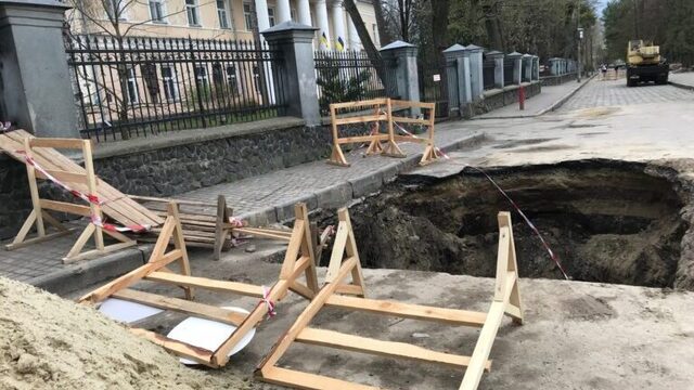 Величезна яма просто в центрі Рівного: штормовий вітер зірвав огорожу (ФОТО)