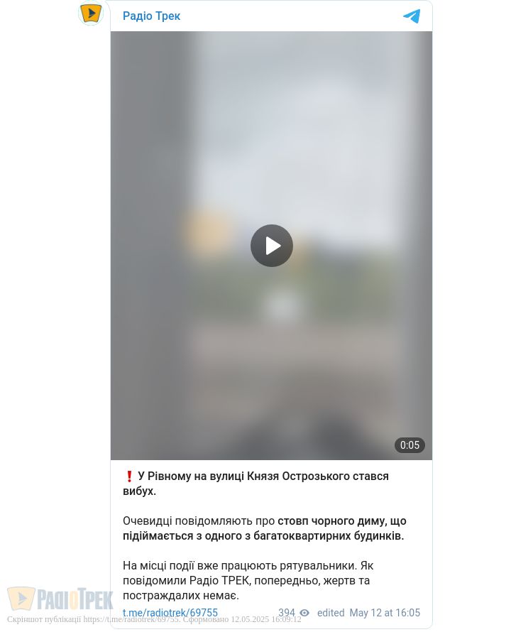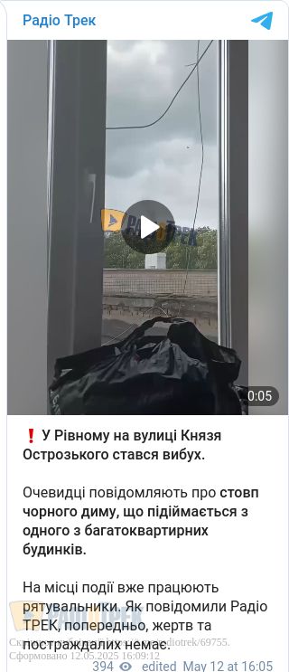 У Рівному, на вулиці Князя Острозького, стався вибух у багатоповерхівці.