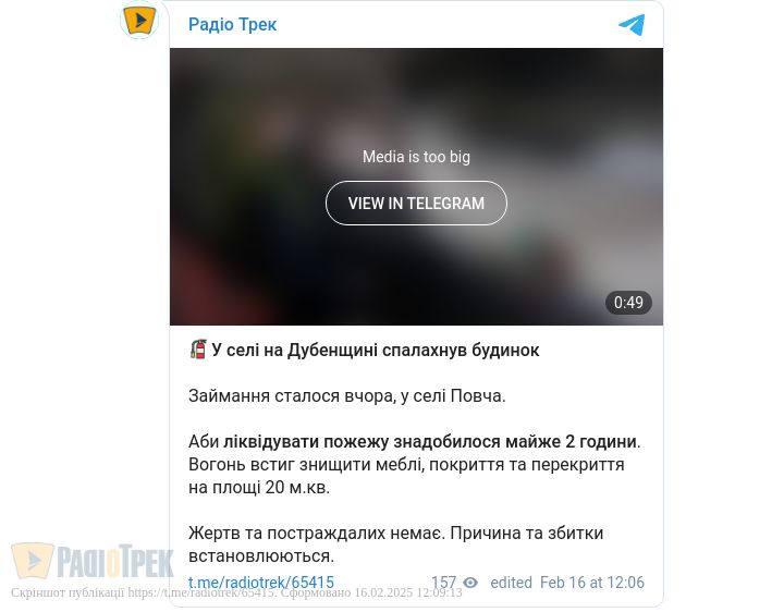 У селі на Дубенщині спалахнув будинок. Займання сталося вчора, у селі Повча.