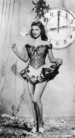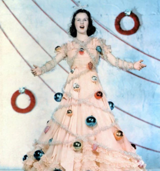 - Діна Дурбін — канадська акторка у костюмі різдвяної феї, персикова сукня, прикрашена кульками та мішурою, 1945 рік.