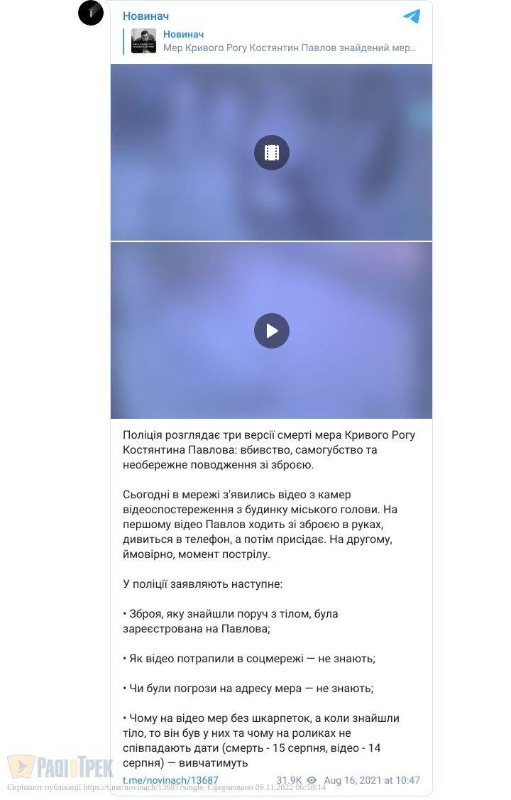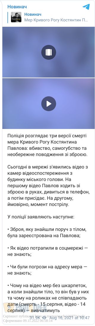 - Чому на відео мер без шкарпеток, а коли знайшли тіло, то він був у них та чому на роликах не збігаються дати (смерть - 15 серпня, відео - 14 серпня) — вивчатимуть.