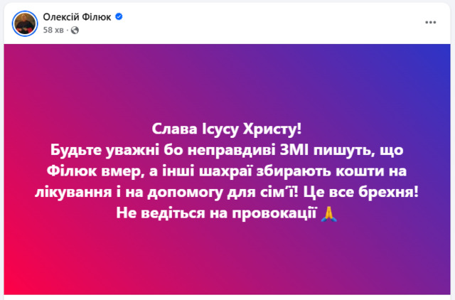 Він відома медійна особа завдяки своїм соцмережам, тож шахраї вже скористалися цією інформацією і поширюють фейки про збір грошей на його лікування.