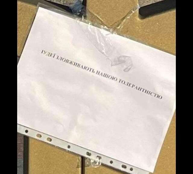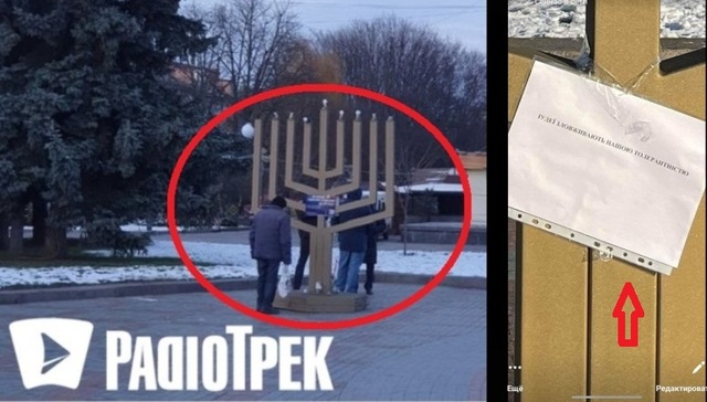 Сьогодні ж став відомий і зміст записки, що її залишили на Менорі ті, чи той, хто пошкодив на ній ліхтарі.