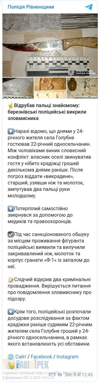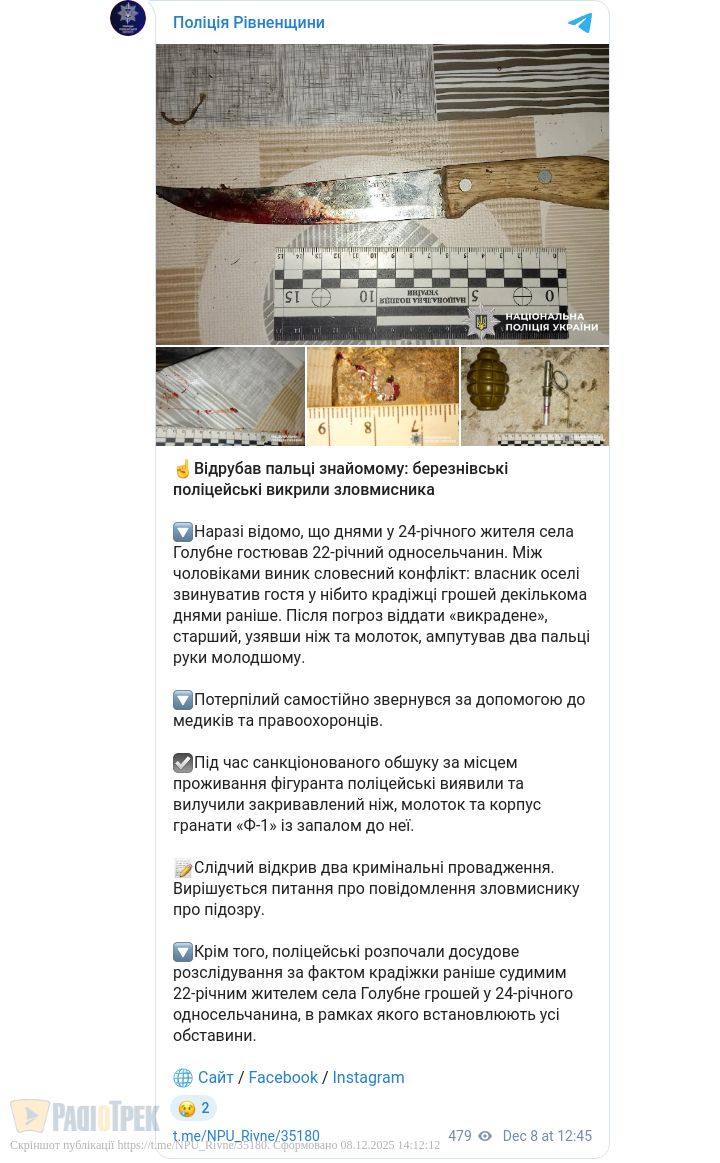 Відрубав пальці знайомому: 24-річного зловмисника затримали у Березному (ФОТО)