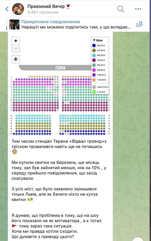 Виступи Терена були заплановані на березень цього року. Однак за місяць квитки на події майже ніхто не купував. Проте, один виступ у Львові все ж відбудеться.