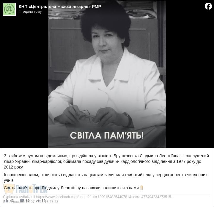 Її професіоналізм, людяність і відданість пацієнтам залишили глибокий слід у серцях колег та численних учнів. Світла пам’ять про Людмилу Леонтіївну назавжди залишиться з нами, – йдеться у повідомленні.