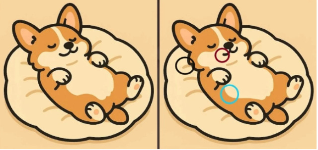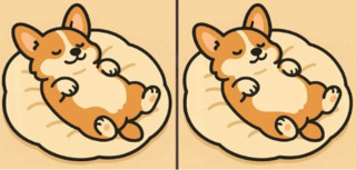 Перед вами дві майже однакові картинки з милим песиком, який спить на лежанці.