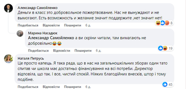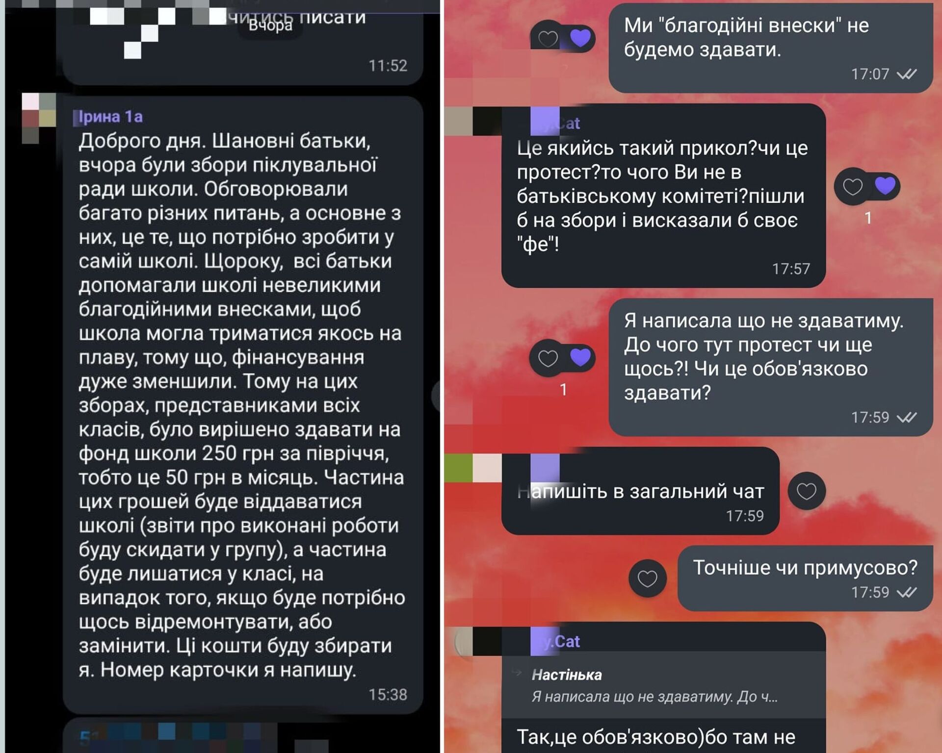 В соцмережах оприлюднюють переписки у батьківських чатах з приводу поборів у школах:
