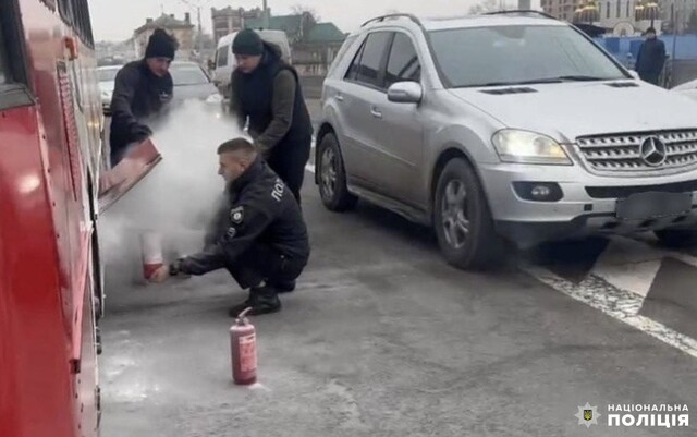 На допомогу водієві прийшов поліцейський офіцер громади Володимир Сидорчук. На той момент систему обігріву вже охопило полум’я.