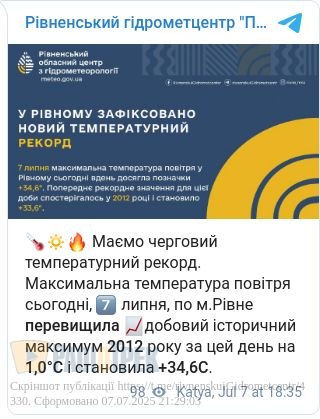 До слова, за попередніми прогнозами, спекотна погода буде в Рівному та області й завтра, 8 липня.