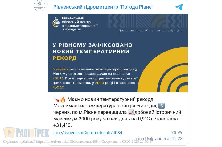 Вперше за чверть століття на Рівненщині зафіксували рекорд