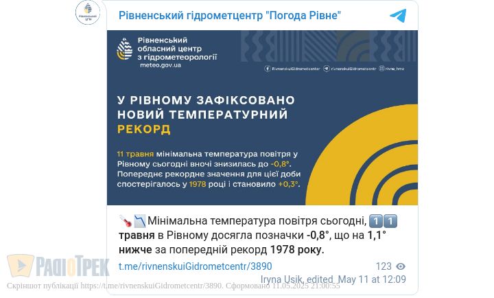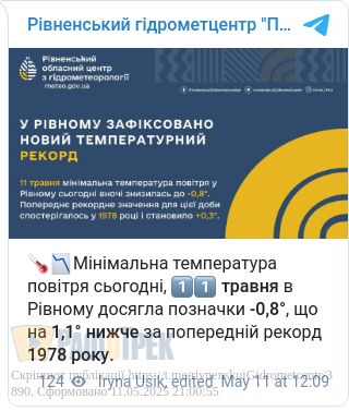 Черговий температурний рекорд сьогодні, 11 травня, зафіксували у Рівному.