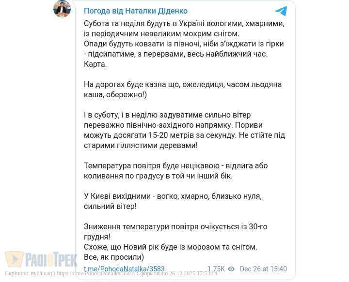 На дорогах буде казна-що, ожеледиця, часом льодяна каша, обережно. І в суботу, і в неділю задуватиме сильно вітер переважно північно-західного напрямку.