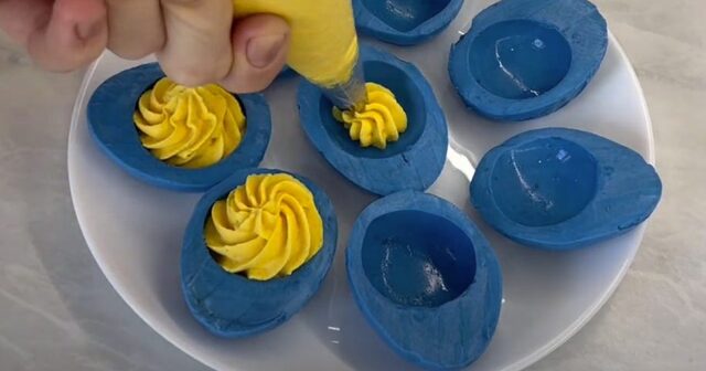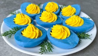 На Великдень жодна родина не обходиться без крашанок. А що як зробити їх жовто-блакитними, до того ж ще й фаршированими? Такий великодній стіл вразить усіх гостей.