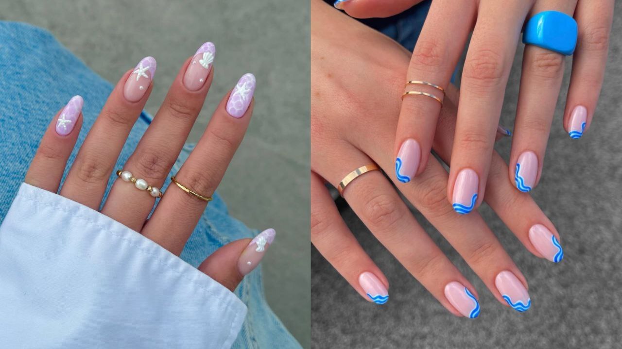 Додайте акцентів із черепашками, морськими зірками чи акварельними хвилями — і на нігтях з’явиться відчуття відпустки біля моря.