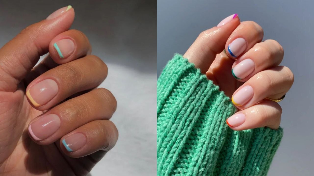 Замість білої «посмішки» на кінчиках — різні кольори. Кожен ніготь може мати свій відтінок: ніжні пастелі або соковиті неони.