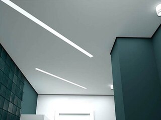 Тіньова натяжна стеля працює за принципом оптичної ілюзії - завдяки особливому способу кріплення між стелею та стіною утворюється тонкий зазор, який створює м'який тіньовий ефект. Цей прийом відволікає увагу від нерівностей стін і надає приміщенню сучасного, мінімалістичного вигляду.