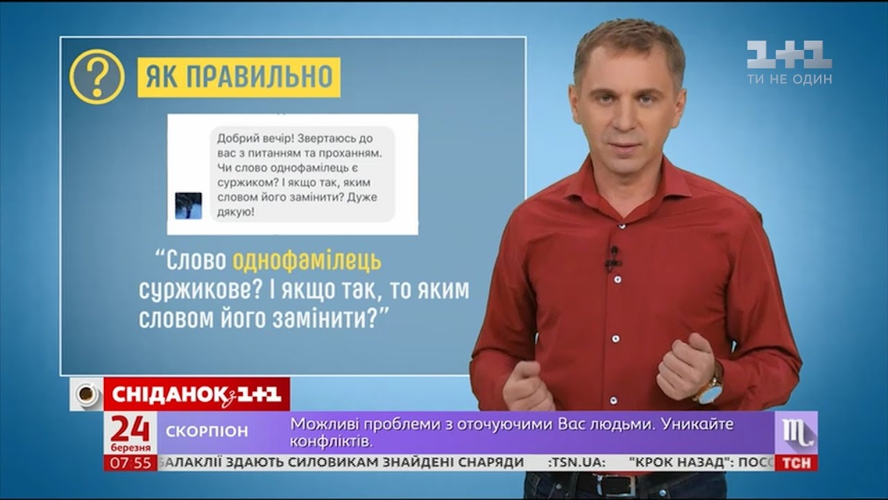 Цю думку підтримує і філолог Олександр Авраменко. Хоча він у своєму відеоуроці й пояснює, що слово «однофамілець» не є суржиковим, і використовувати його не буде вважатися помилкою, все ж в українській мові є синонім «тезко».