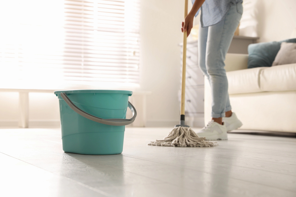 Для миття підлоги краще використовувати теплу воду — гаряча робить поверхню липкою, а холодна погано змиває стійкий бруд.
