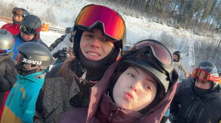 Звісно, не обійшлося без катання на лижах. До речі, Еден Пассареллі як справжній джентльмен допомагав дівчатам та самотужки ніс їхнє приладдя.