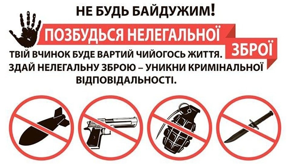 У поліції наголошують, в разі добровільної здачі зброї, що передбачено частиною 3 статті 263 Кримінального кодексу України, громадяни звільняються від кримінальної відповідальності. Однак за незаконне поводження із вогнепальною або холодною зброєю, бойовими припасами або вибуховими речовинами частина 1 та 2 вказаної статті передбачає позбавлення волі на строк від трьох до семи років.