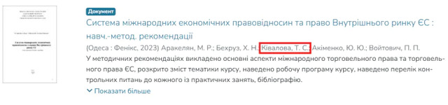 Відомо, що 2023 року дочка колишнього регіонала значилась співавторкою методичних рекомендацій для Національного університету «Одеська юридична академія»