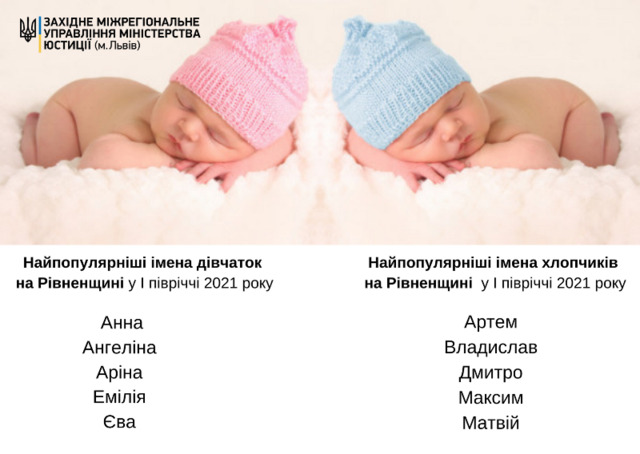 Імена, якими батьки називали своїх у першому півріччі 2021 року, проаналізували фахівці обласного відділу держреєстрації актів цивільного стану Західного управління Мін’юсту.