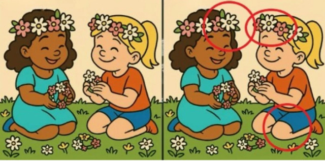 У цій загадці вам потрібно знайти три відмінності між дівчатами, які зображені на картинці.