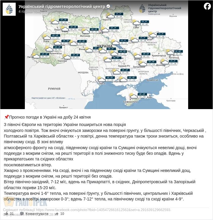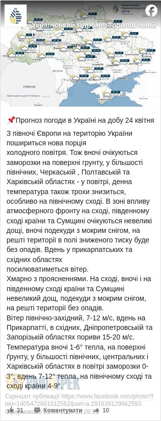 Прогноз погоди на п’ятницю