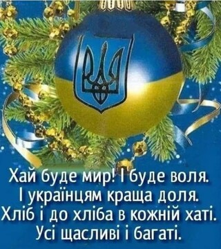 Нехай Різдво принесе вам віру в майбутнє! Бажаю щастя у кожному куточку рідної землі. Бажаю щедрої долі й любові. Щоб Україна в серцях наших завжди квітла!