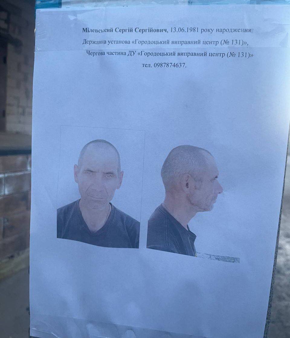 Листівки про розшук засудженого помітили у Рівному. У повідомленні йшлося, що 44-річний Сергій Мілевський втік із Городоцького виправного центру.