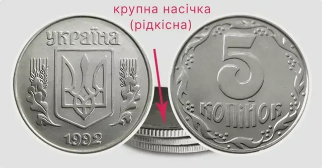 - Через помилку на монетному дворі невелика кількість монет отримала велику насічку на гурті. Саме такі 5 копійок дорого купують нумізмати, – розповіли фахівці.
