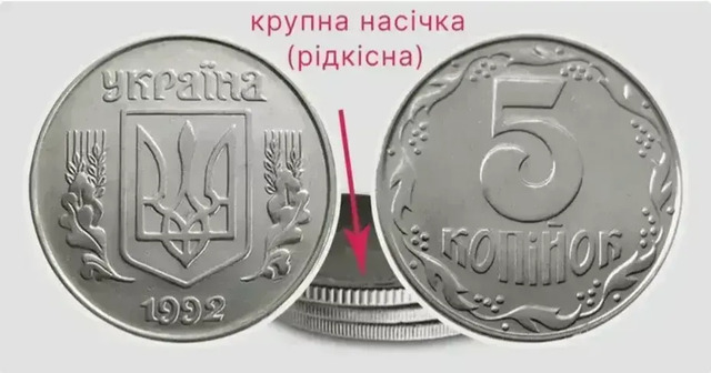 - Через помилку на монетному дворі невелика кількість монет отримала велику насічку на гурті. Саме такі 5 копійок дорого купують нумізмати.