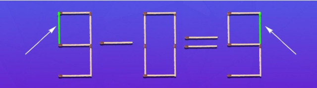 Можна додати по одному сірнику до цифр 3 і 5, щоб отримати 9 + 0 = 9.