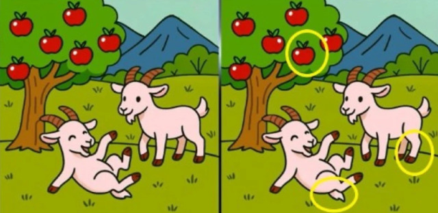 Вам потрібно знайти три відмінності між малюнками, на яких зображені козенята. Спершу може здаватися, що зображення абсолютно однакові, але це лише ілюзія. Відмінності справді є — просто вони добре заховані.