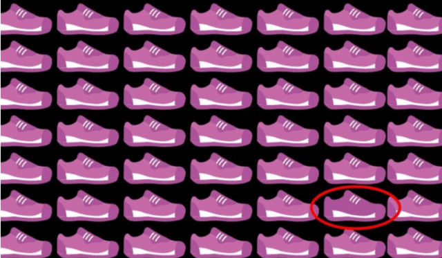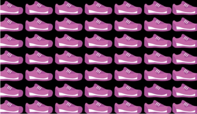 На картинці вище зображено дуже багато кросівок, а один із них унікальний.