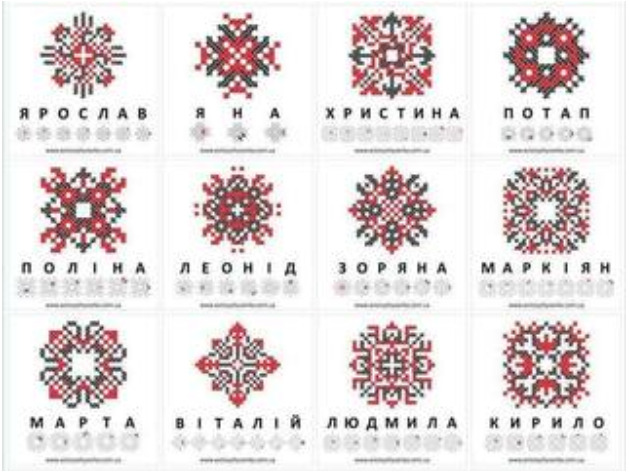 Зараз є можливість зашифрувати слова, назви міст та власне ім’я у схему українського орнаменту, який нагадує QR-код. Кожна літера – це вишитий символ, а кожен символ – це потужний оберіг.