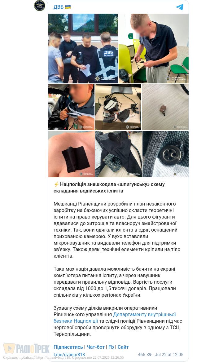 Фігуранти ховали в одязі клієнтів відеокамери й навушники, щоб диктувати відповіді на теоретичний іспит.