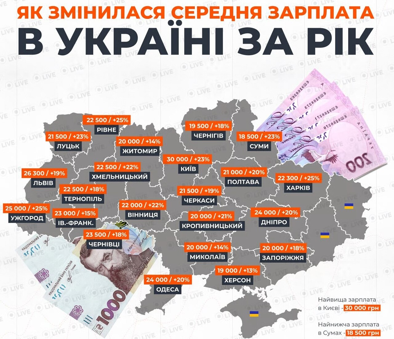 Найвищі зарплати — у Києві, Львові та Ужгороді, а найнижчі — у Херсоні, Сумах і Чернігові.