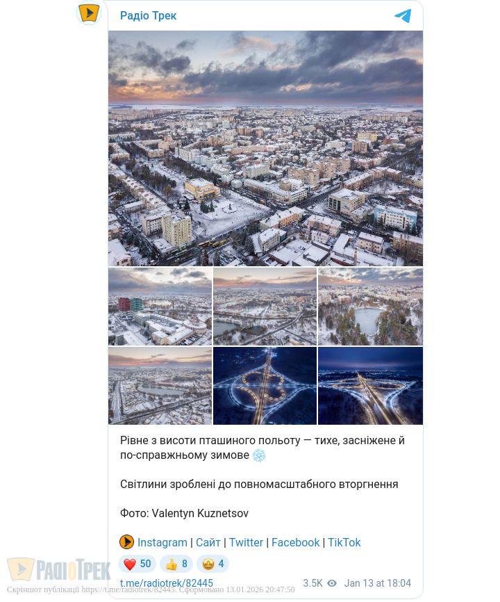 У мережі з’явилися світлини Рівного з висоти пташиного польоту. На знімках місто виглядає тихим, засніженим і по-справжньому зимовим.