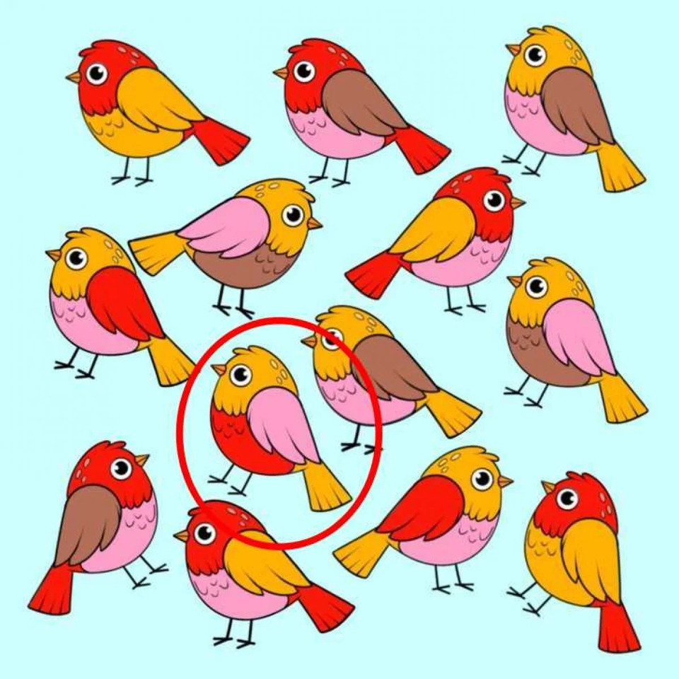 Вітаємо тих читачів, які вирішили головоломку: у вас гострий зір та високий IQ. Птах без пари позначений червоним кружком.