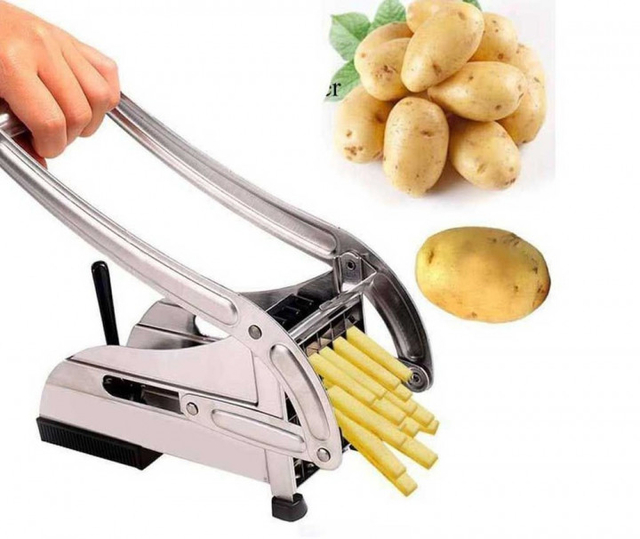 Працює просто: закладаєте в нього очищену картоплину, натискаєте, і вже за секунду отримуєте ідеальні рівненькі брусочки, як у МакДональдсі.