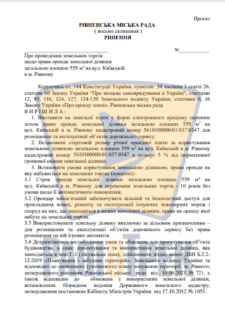 На Київській у Рівному може з'явитися новий об'єкт дорожнього сервісу. Принаймні майже 6 соток землі міська рада має намір виставити на земельні торги для продажу права оренди ділянки на 10 років.