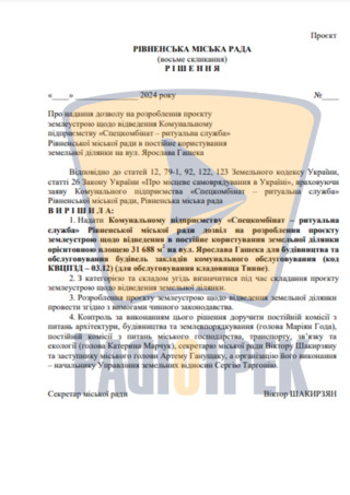 Йдеться про земельні ділянки на вулиці Марусі Чурай для обслуговування кладовища Басів Кут, територію чинного кладовища на вулиці Крейдяній, відома як кладовище у Тютьковичах, ще понад 30 тисяч метрів квадратних передадуть на Ярослава Гашека, там знаходиться Тиннівське кладовище, та ще одна ділянка на Олексинській, для обслуговування цвинтаря у Золотієві.