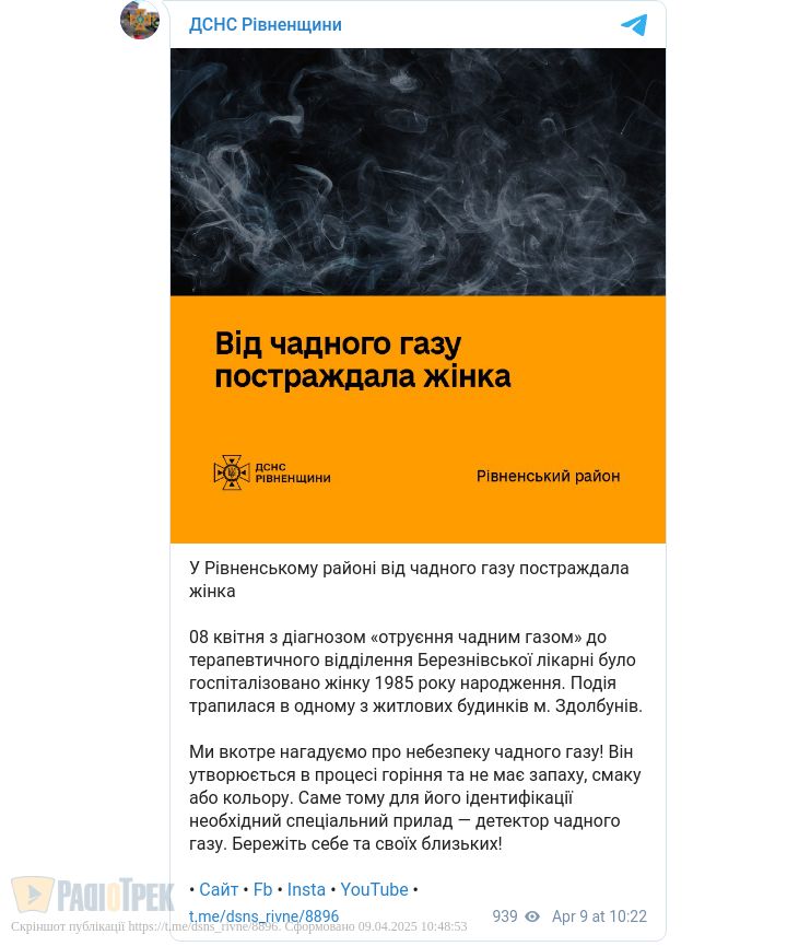 Жінка у Здолбунові отруїлася чадним газом: її госпіталізували
